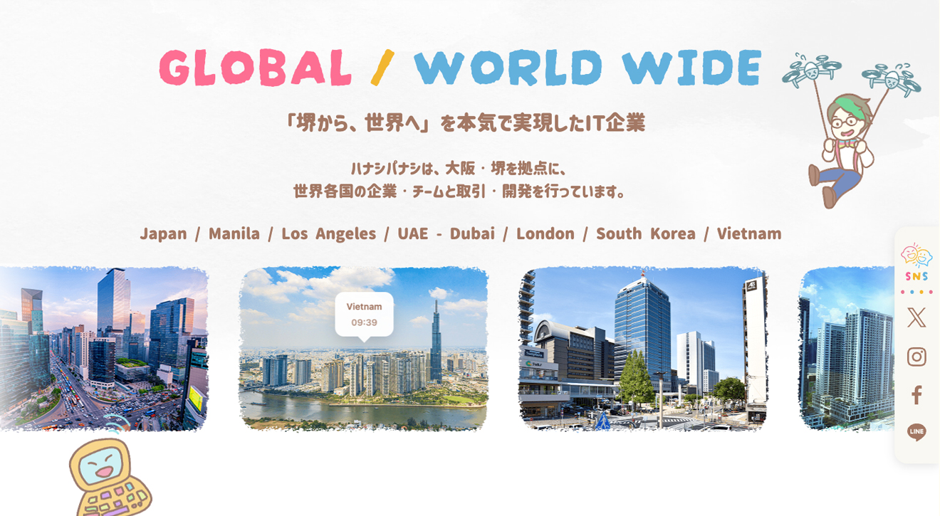 現在、ハナパナではシステム開発やAIを活用した事業に力を入れているのですが、世界各国の企業とグローバルな取引や海外チームと連携した開発などに取り組んでいます。