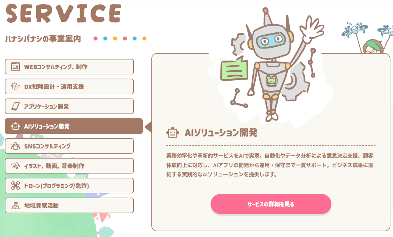 いろんな意味でクセが強い会社ですが、IT企業では他に見ない可愛いデザインの公式サイトに仕上がり、スタッフみんな気にいっています。